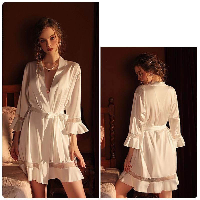 Its incredibly soft texture feels like a gentle embrace, offering deep relaxation after a long day. This robe will become your favorite companion for cozy breakfasts, evening self-care rituals, or simply lazy weekends in bed. With its thoughtful design, it fits perfectly, keeping you warm while highlighting your femininity.